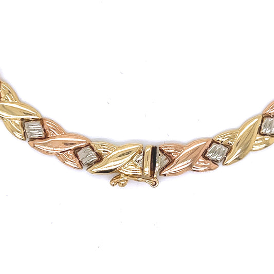 Tri Tone Yellow Rose White Gold Italian Cocktail Necklace