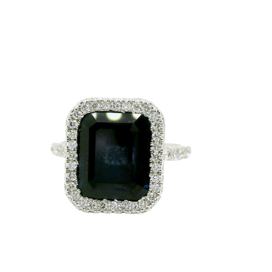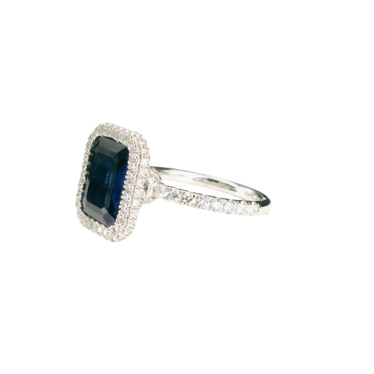 Natural Heated Sapphire and Diamonds Halo Cocktail Ring, in White Gold