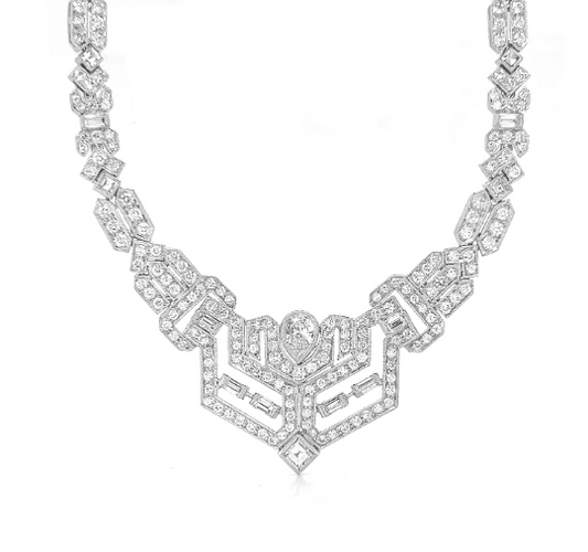Natural Diamond Cluster Art Deco Cocktail Necklace, in White Gold - Preowned