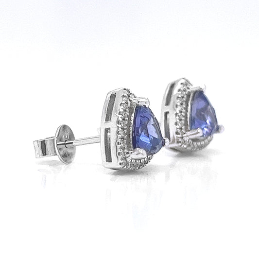 1.46 ct.tw. Natural Tanzanite and Diamond Halo Earrings, in White Gold