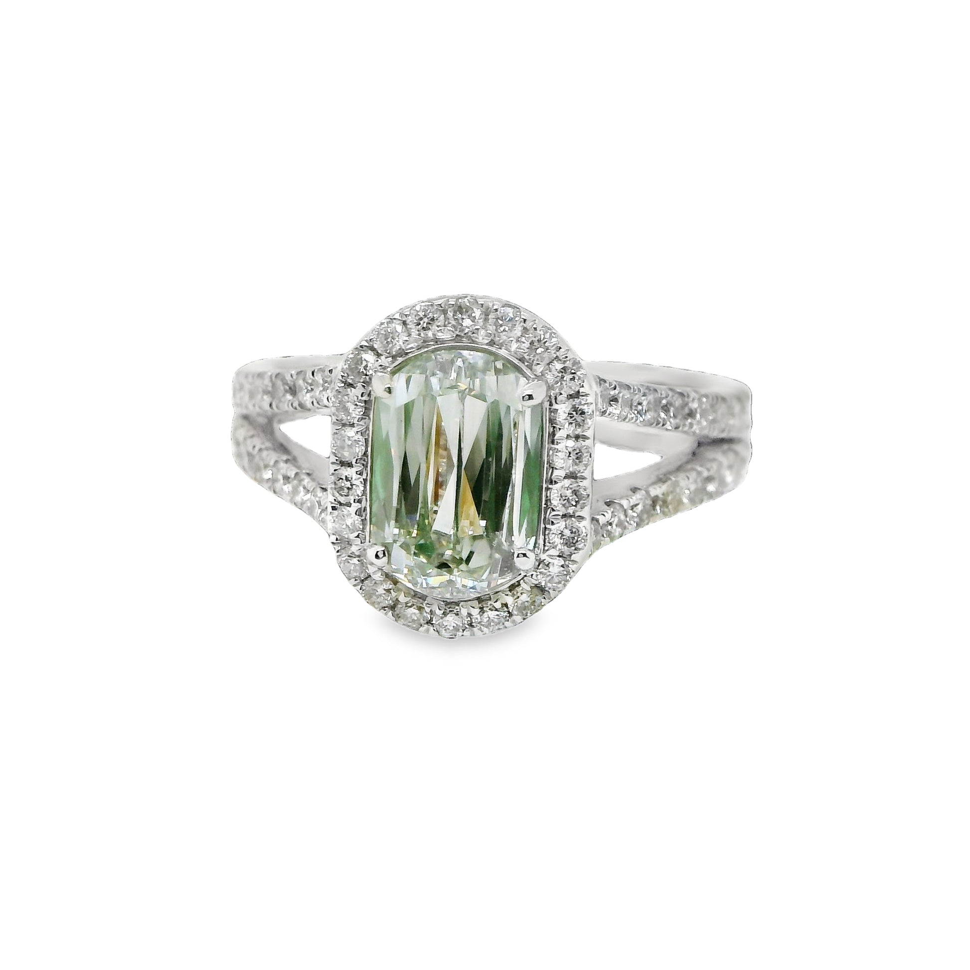 1.98 ct.t.w. Natural Cushion Cut Fancy Green Diamond Halo Ring, in White Gold