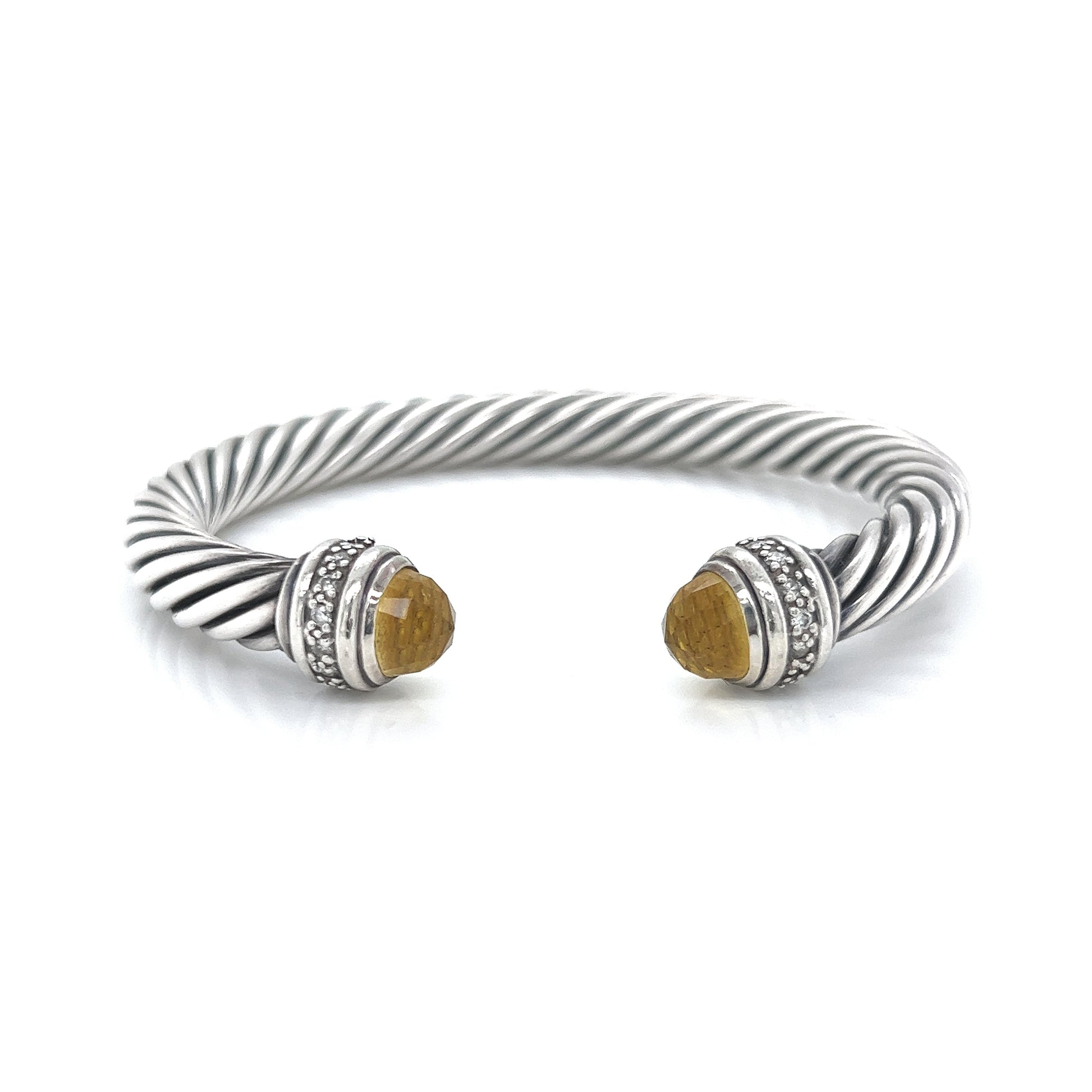 David Yurman Twisted Cable Citrine Diamond Bracelet Sterling Silver - Pre-owned