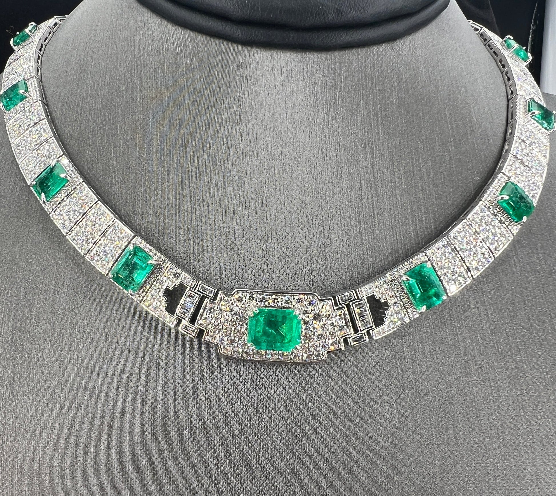 Natural Diamond and Green Emerald Cocktail Platinum Necklace