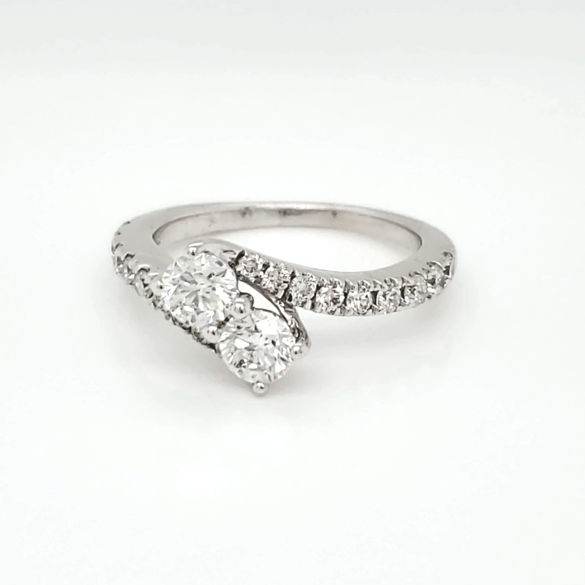 Natural Round Diamond ByPass Bridal Ring, in White Gold - Pre-owned