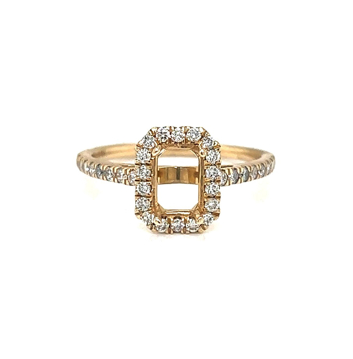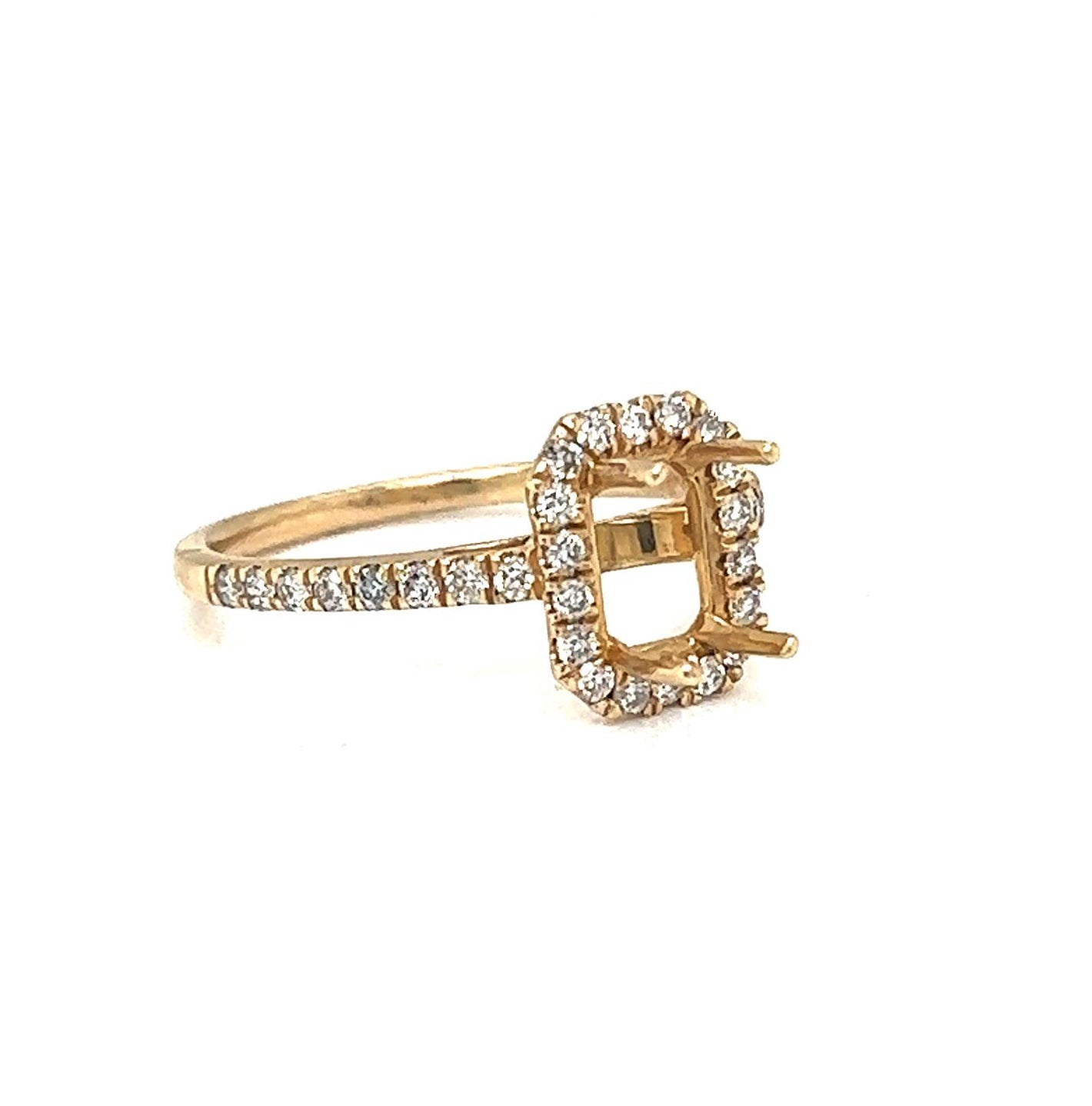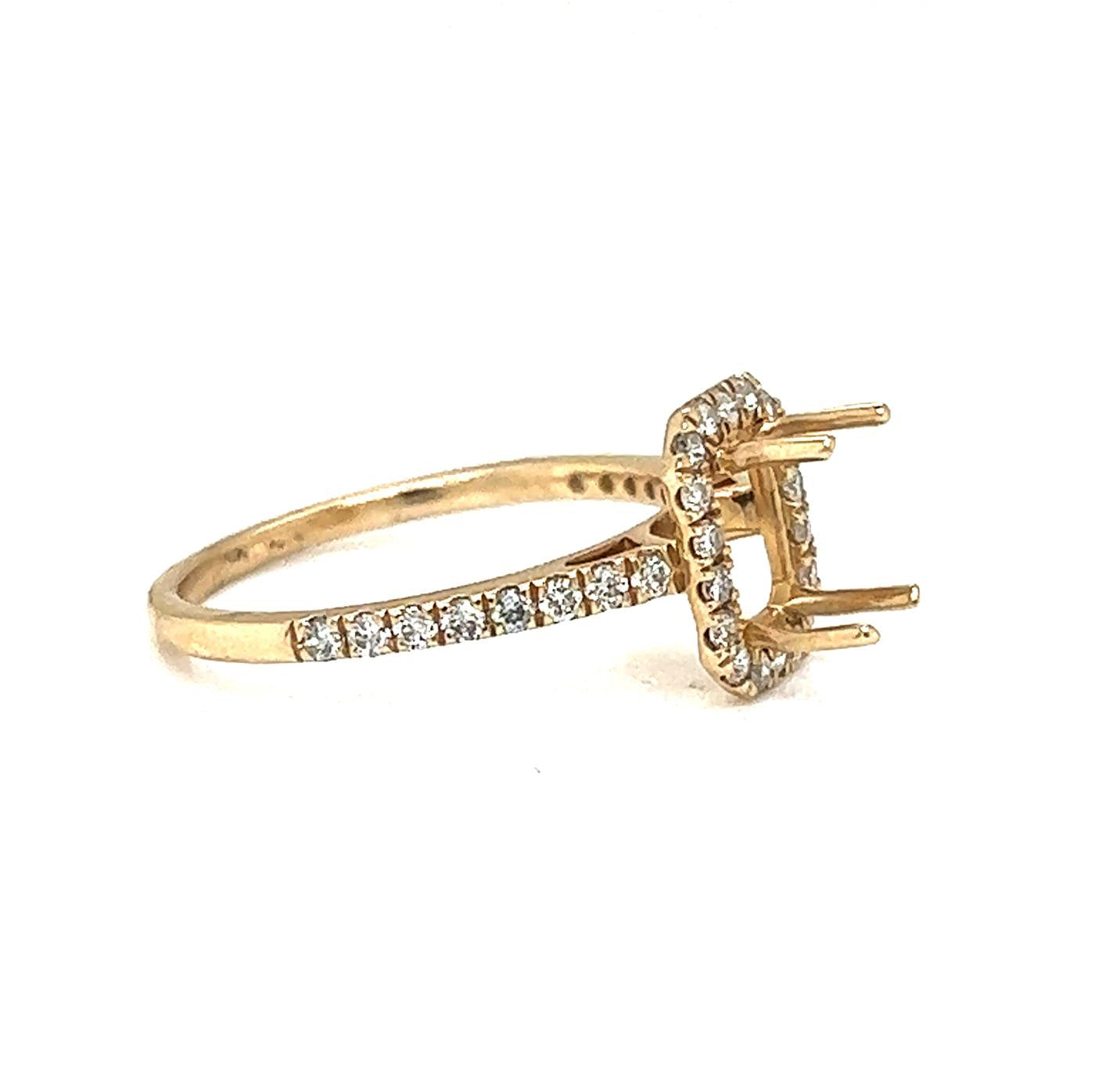 Semi-Mount Fits 7 x 5 mm with Natural Round Diamond Halo Ring, in Yellow Gold