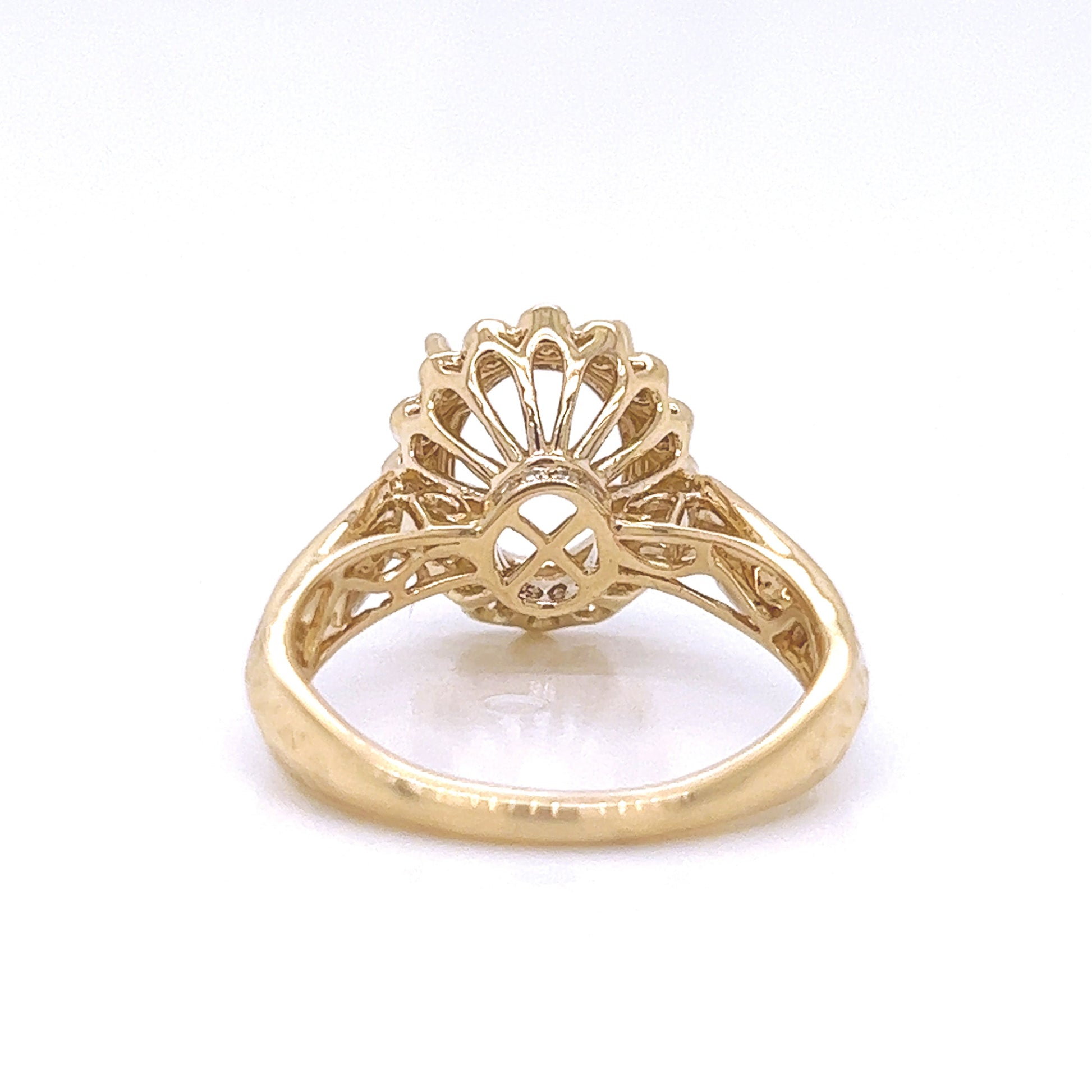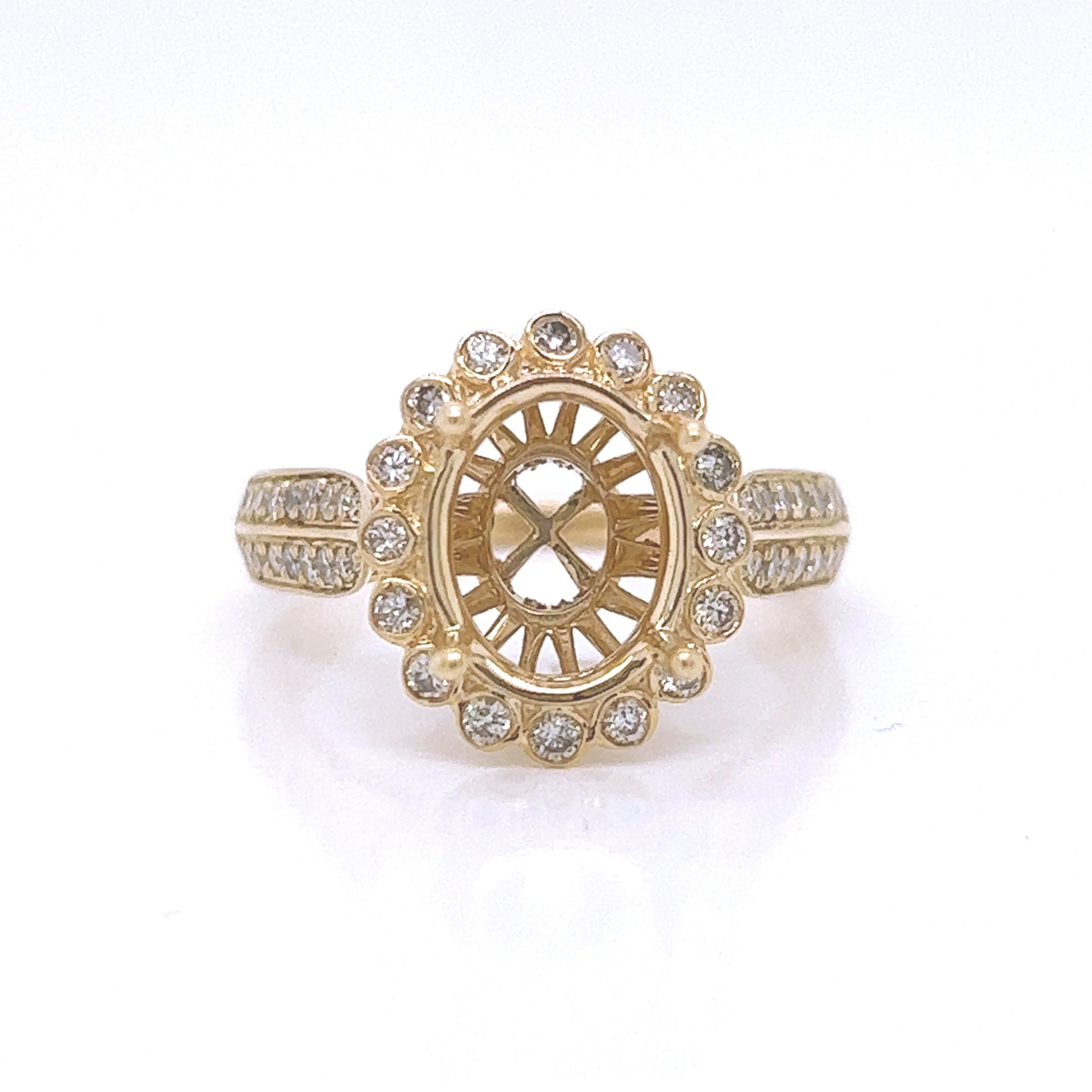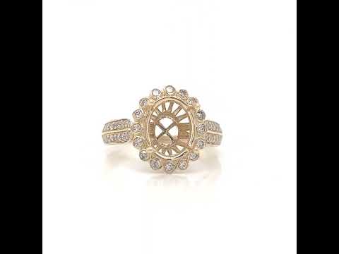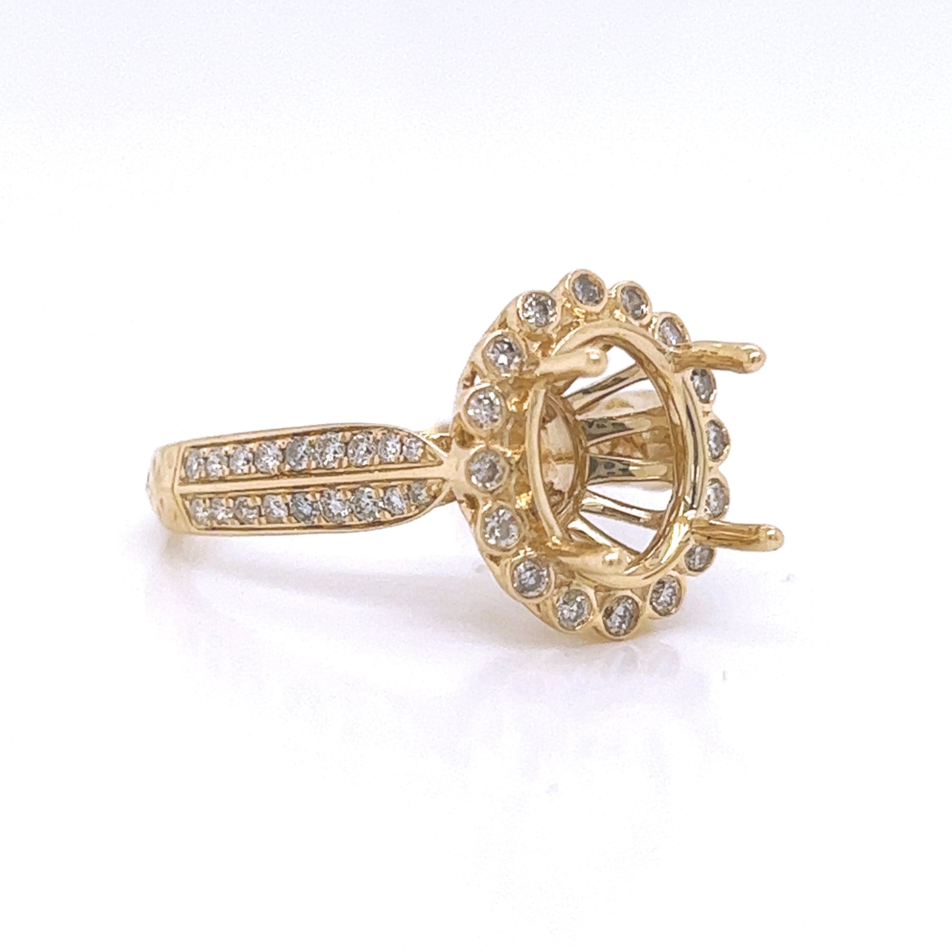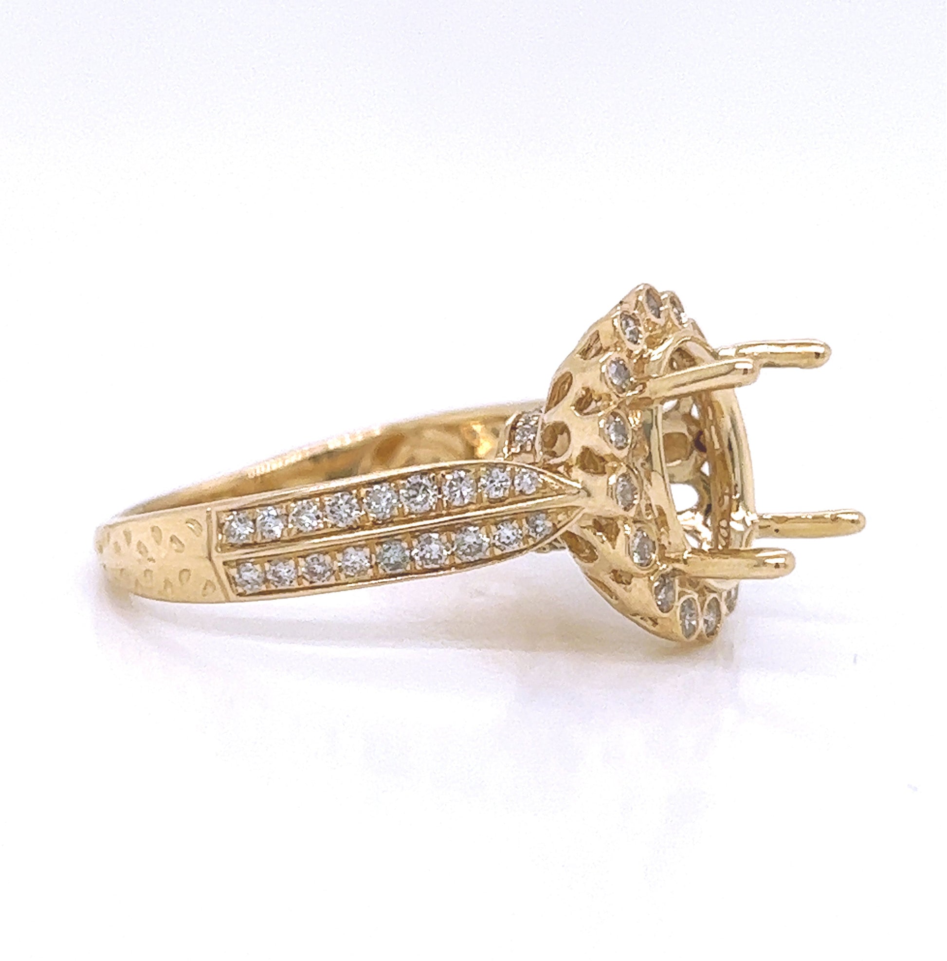 Semi-Mount Fits 10 x 8 mm with Natural Round Diamond Bridal Ring, in Yellow Gold