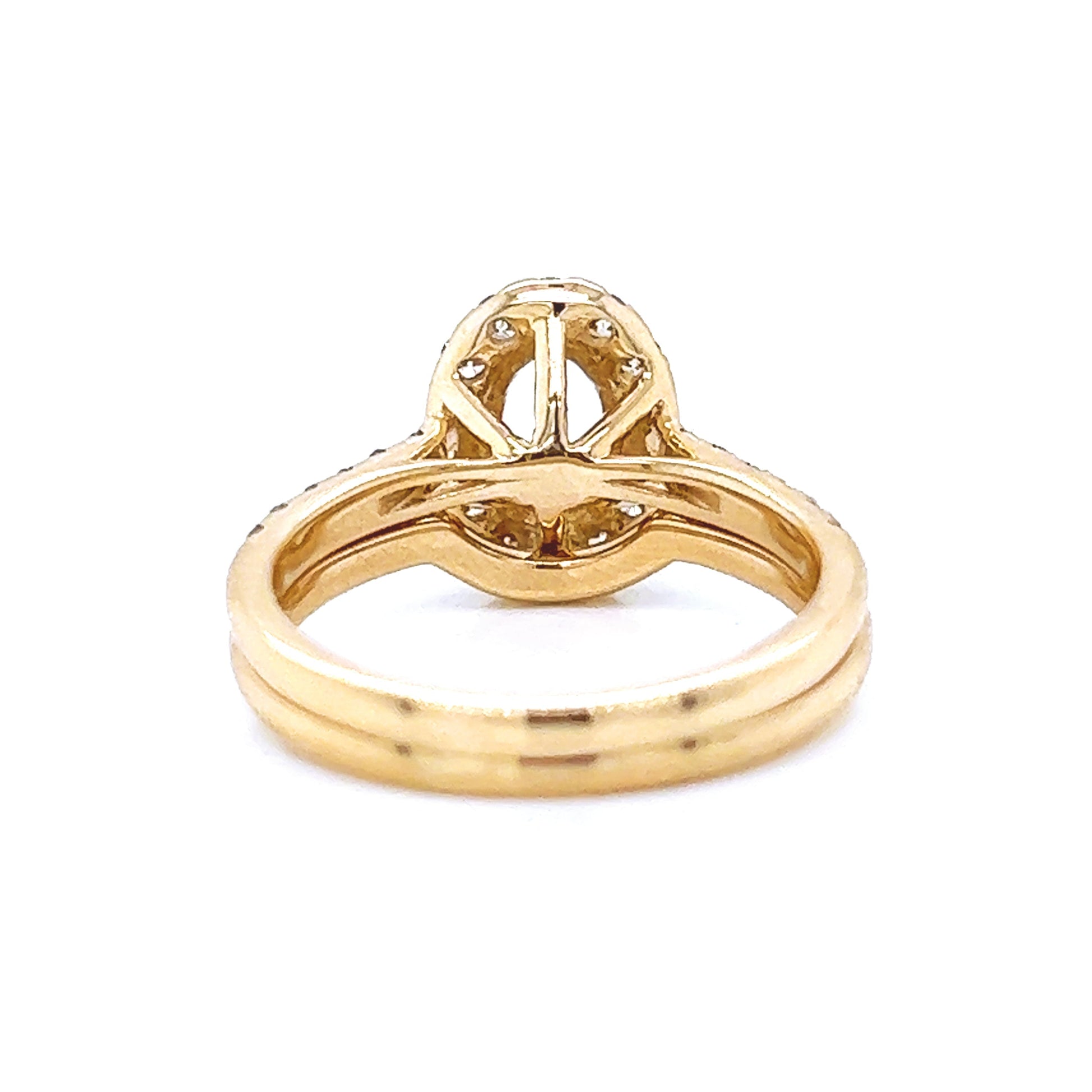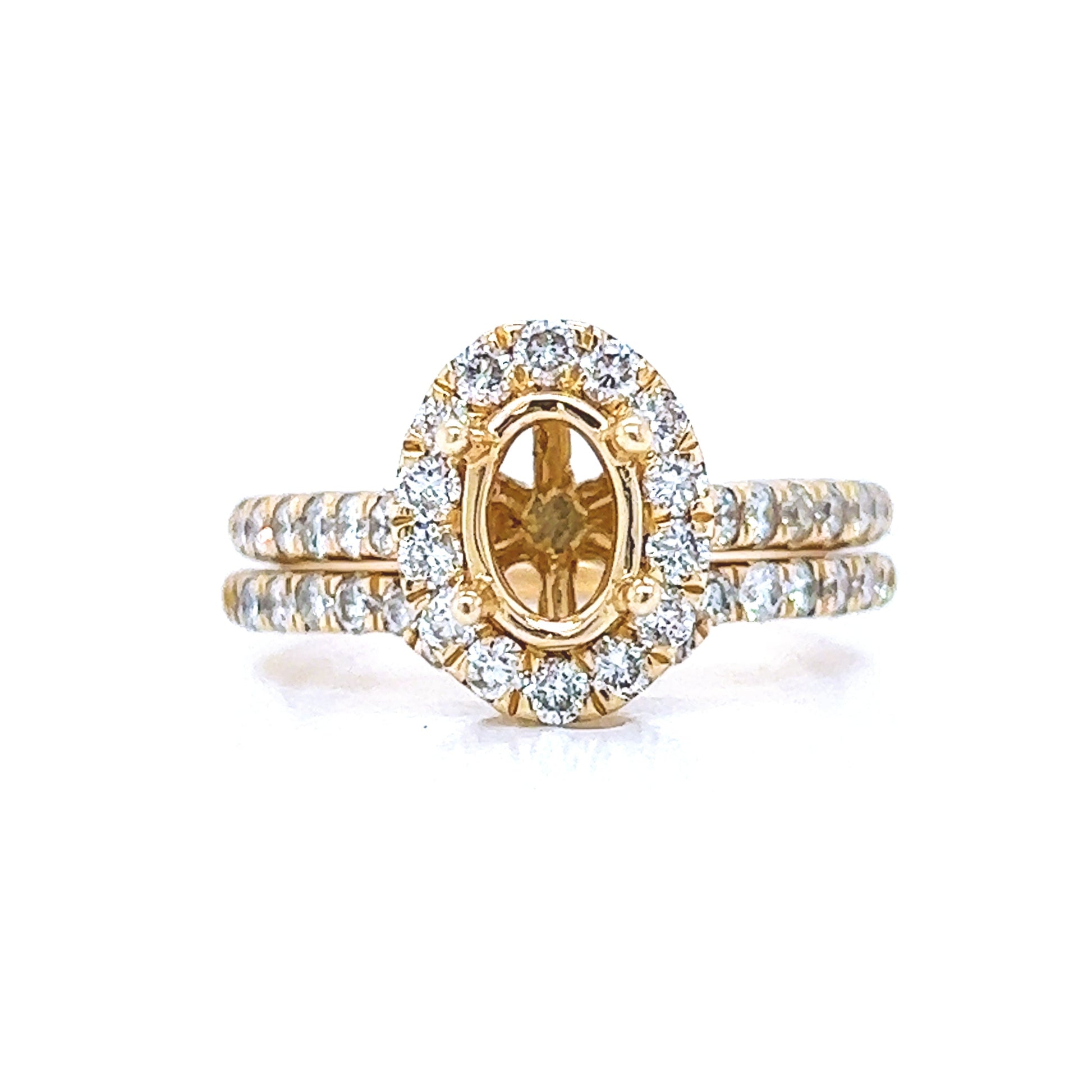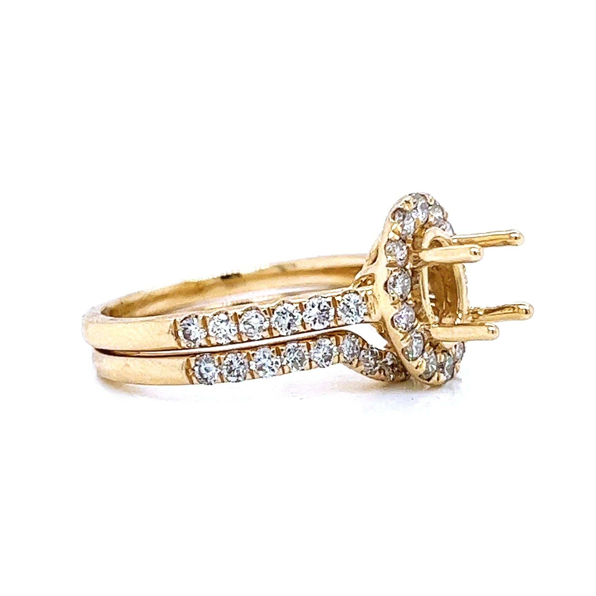 Semi-Mount Fits 7.5 x 5.00 mm with Natural Round Diamond Halo Bridal Ring, in Yellow Gold